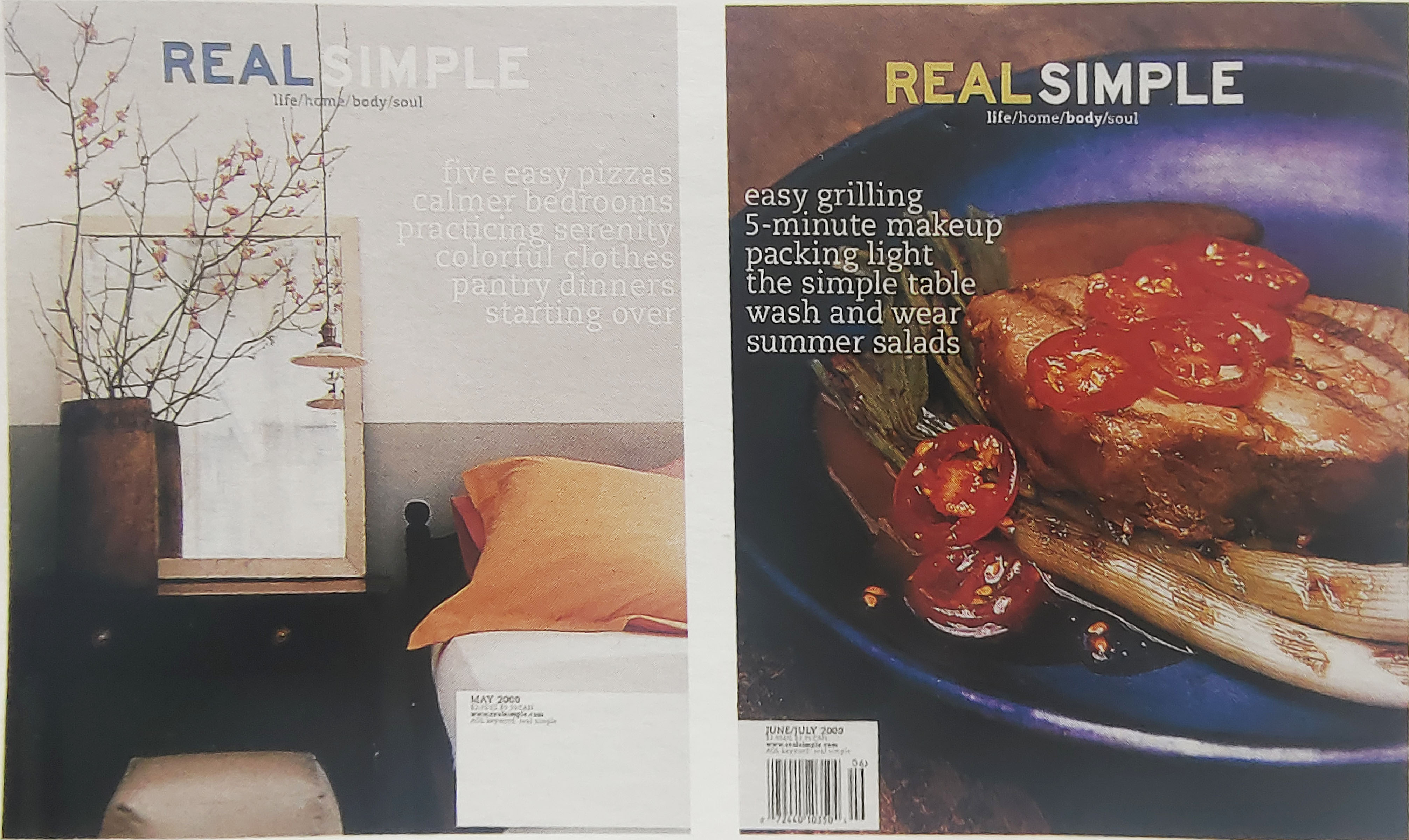 在《Real Simple》2000年5月期的封面上,自然、中性的色彩以及點綴的粉紅和橙色似乎在迎接春天的到來。與色彩豐富的家居裝潢和婦女雜志不同的是,這份雜志灰白的背景中并沒有使用太多的顏色。