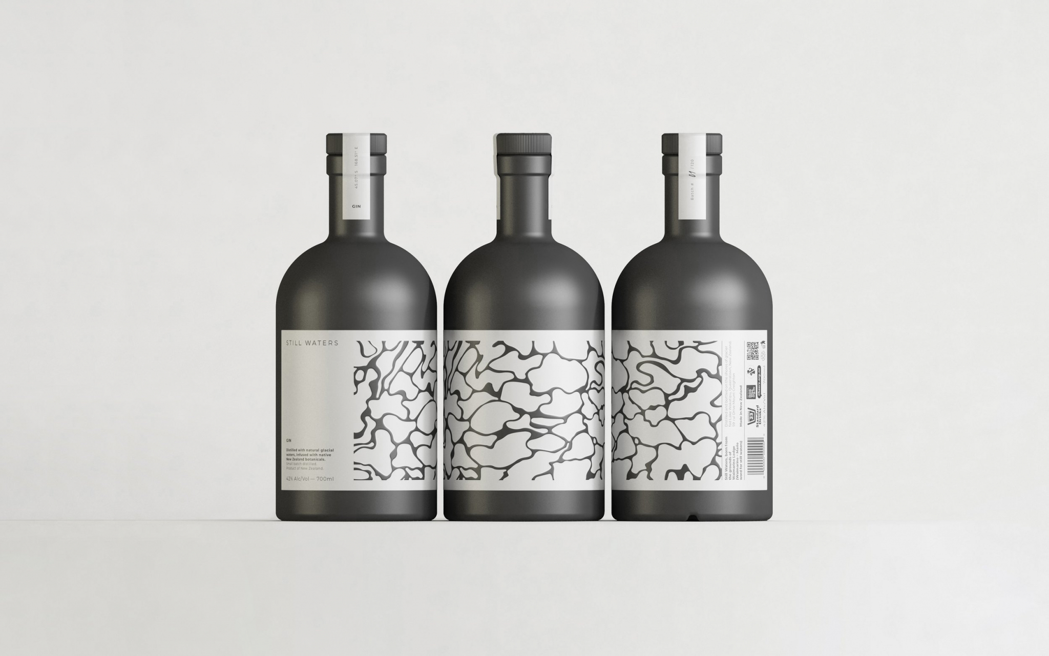 Still Waters從當地葡萄園采摘不適合釀酒的葡萄。然后,它們被用來與附近冰川地區的水源形成基礎精神。僅憑這一點,腦海中就會浮現出神奇的場景,一片荒野;涼爽而安靜,除了冰川水的洶涌和海浪。在大自然依然廣闊和無法控制的地方,靜水非常受控制,每個過程和原則都受到監督,成分完全可追溯。由Makebardo設計的包裝是這些元素在結構設計和標簽上的完美結合。精細的結構和微妙的紋理。有目的的視覺和物質刺激;有機而精確的線條的集合。自然的和可控的都構成了有趣的圖形。