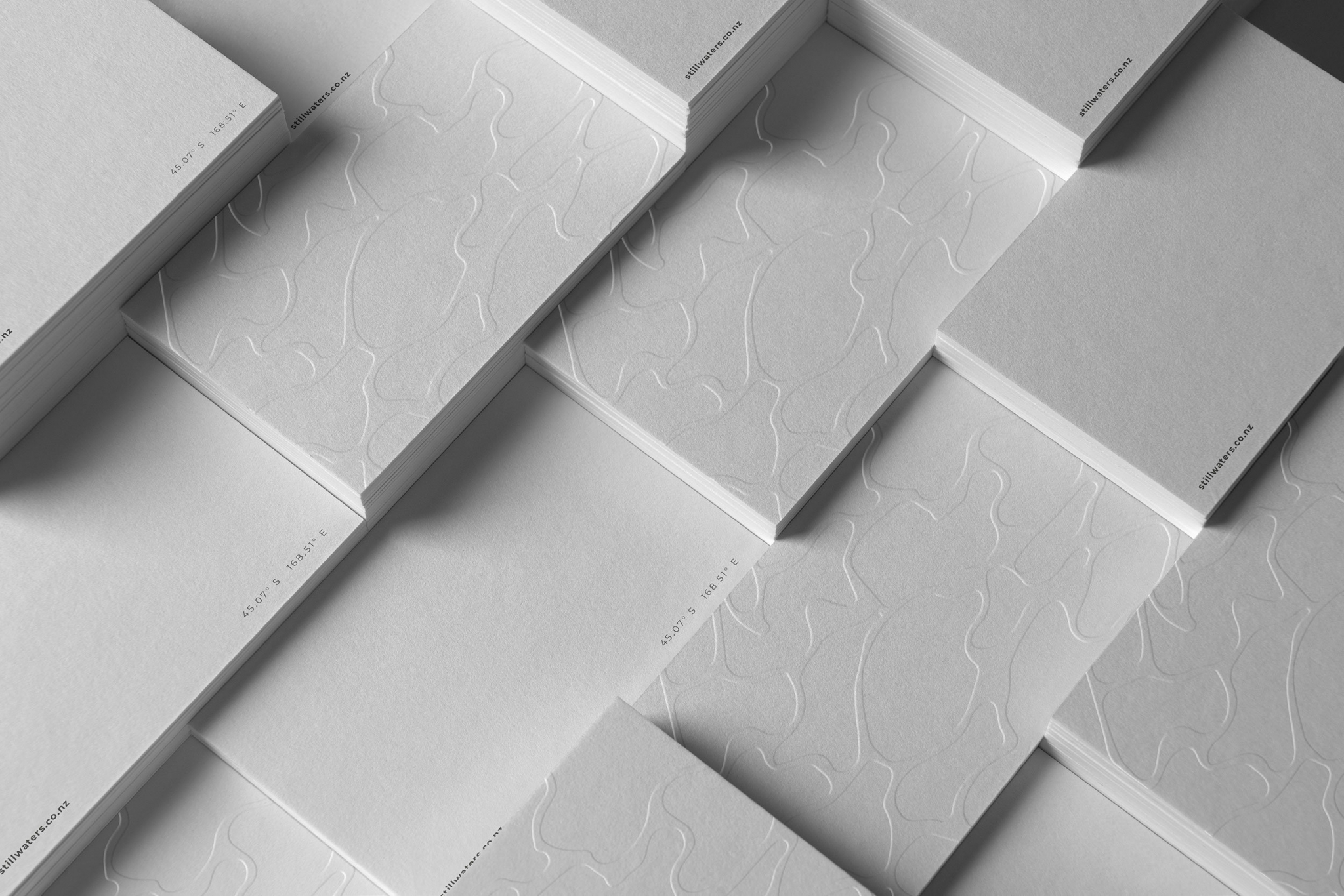 在這里,“水”圖案被應用為灰色和白色板上的盲浮雕,只有最細微的印刷細節,有足夠的空間給它所有的呼吸空間,地理坐標可能是唯一一個真正的隱喻。只有通過導航工具才能實現的“遙遠”是一種在高檔產品(從烈酒到手表到香水)中反復出現的主題,它的存在是因為它的內涵而不是它的實用性,就像視覺主題一樣,有助于將思維投射到一個想象中而不是字面上的靜止之地。