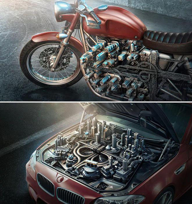 在二維平面上表現(xiàn)三維空間實(shí)際上是利用了人基于視覺經(jīng)驗(yàn)所產(chǎn)生的形態(tài)錯(cuò)視。廣告圖形的空間錯(cuò)視是通過視覺角度的變化對(duì)同一圖形的不同部分產(chǎn)生不同角度的空間聯(lián)想,形成了奇妙的空間組合體,視覺效果奇特,猶如幻覺,可以喚起受眾的好奇心。