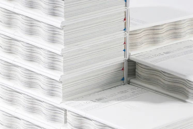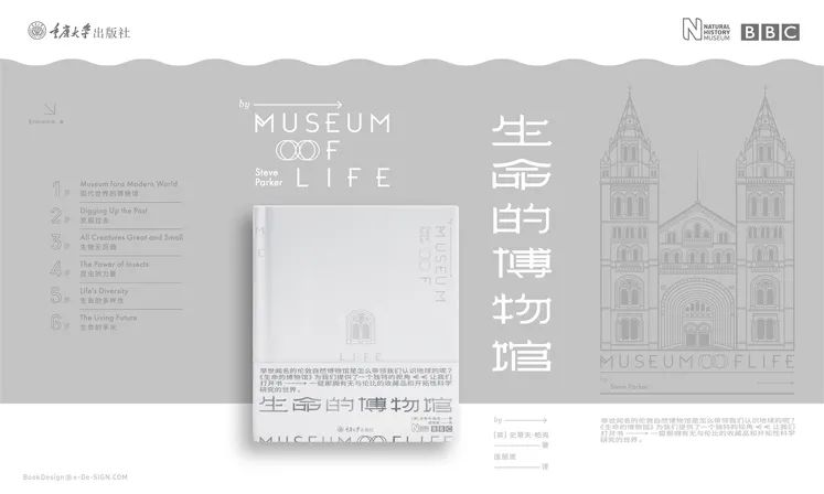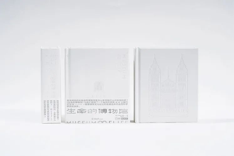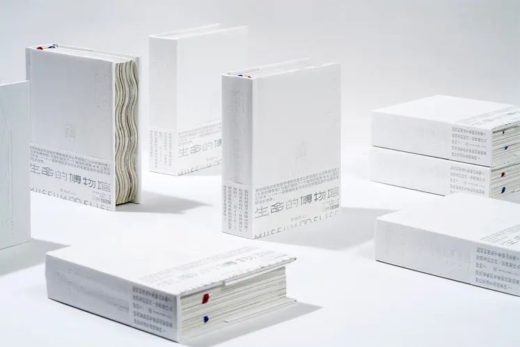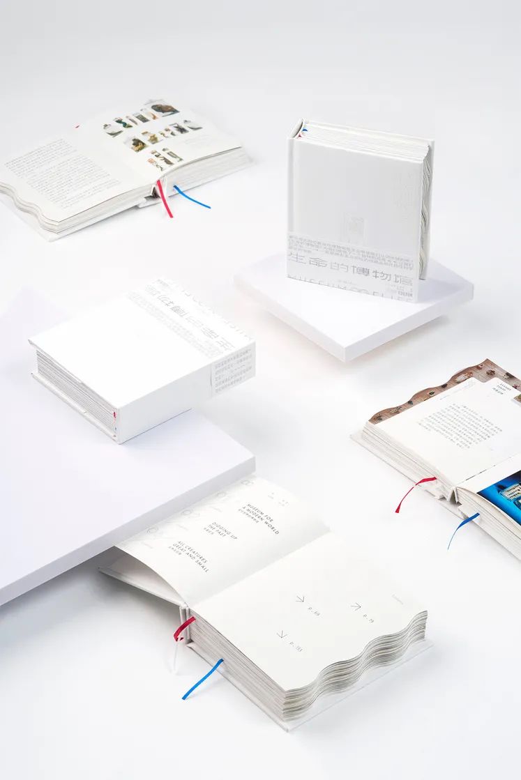 這本書被設計成很小的尺寸。書籍邊緣特別設計成波浪的形狀,使書本身有了更生動的“立體感”和“流動性”。紅色、白色和藍色的帶狀書簽也是生命的動脈和脈絡的象征。書,從它的內部到外部,呈現大量的純白色。封面上的信息油墨印刷的,而是采用壓印工藝呈現在紙上的,直觀地表達了人們在博物館行走的感受,質樸自然,同時,也傳達出了從小細節到大畫面對自然生活的觀照。我們必須用心觀察我們自己眼睛里的自然,然后才能想象出一個不同的場景。